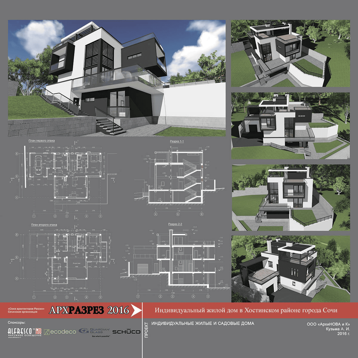Первое место присуждено: «Индивидуальный жилой дом в Хостинском районе»; ООО «АрхиНОВА и К»; архитектор: Кузьма А.И.