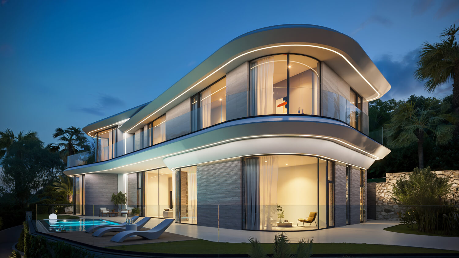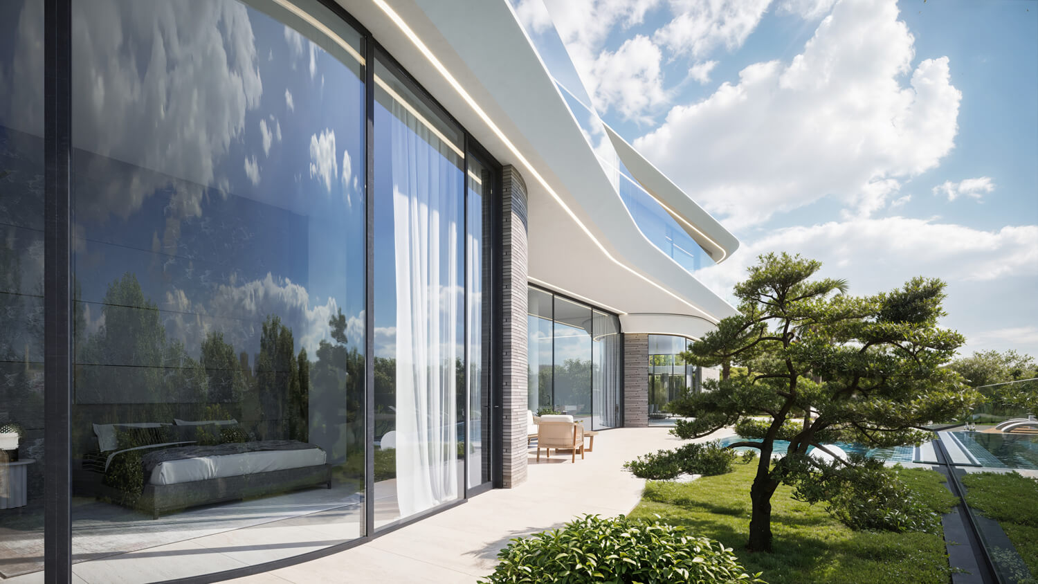 Малированные стеклопакеты, подчёркивающие плавные линии архитектуры