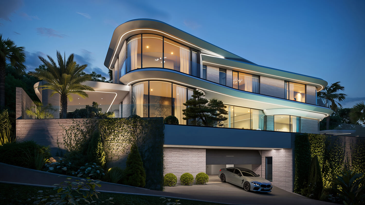 Это уже двухэтажная вилла площадью 600 м², спроектированная индивидуально под запросы новых владельцев, с учётом их пожеланий к пространству, функциям и масштабу.