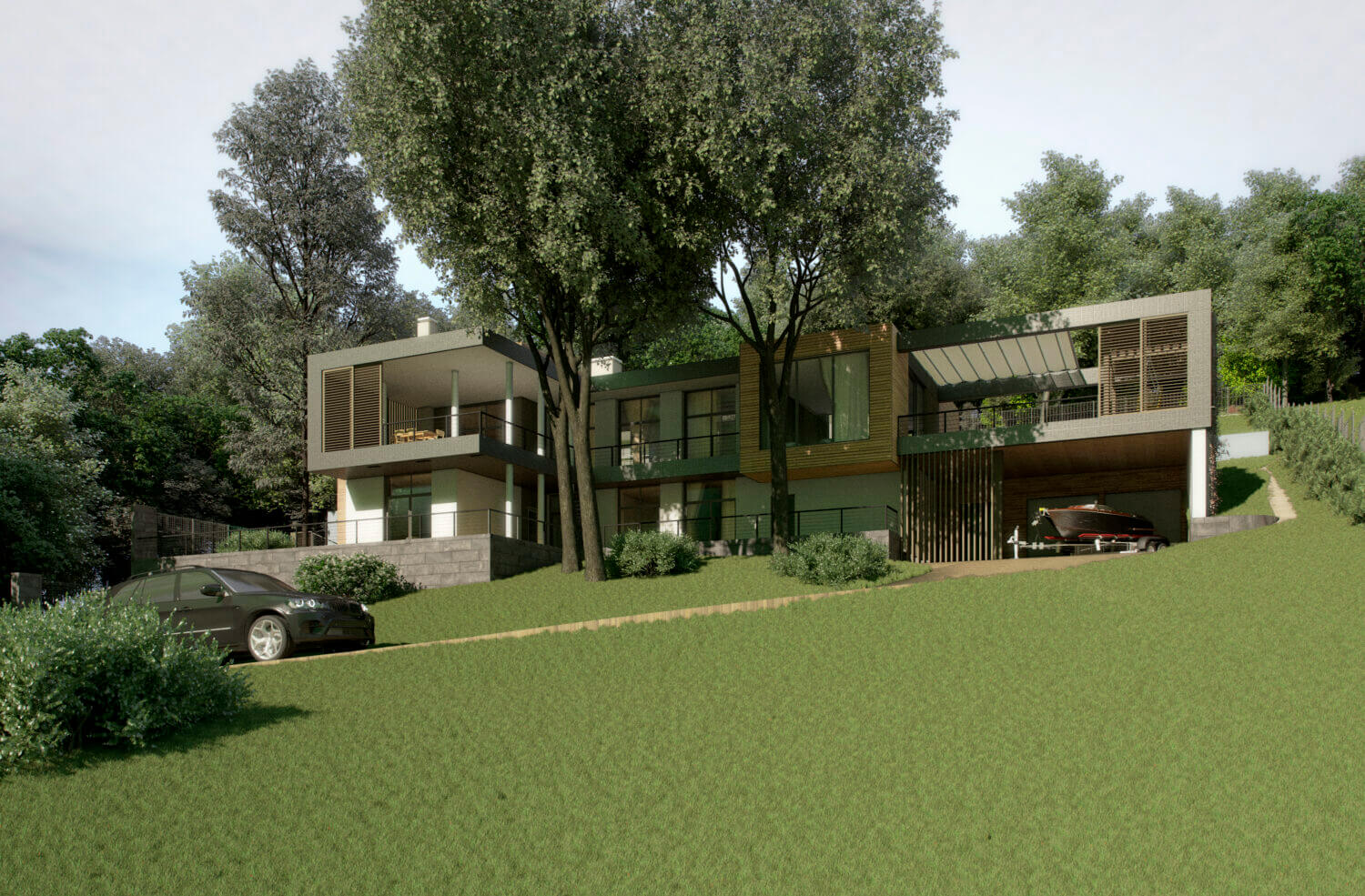 Специфика Сочинской местности практически всегда предполагает рельеф на участке. Иногда, как видим на этом объекте, участок имеет достаточно сильный уклон. 👆Однако при правильной посадке дома – это может оказаться существенным плюсом участка. В данном случае наш участок находится на южном склоне горы и обладает прекрасным видом на одну из наших главных достопримечательностей – морской пейзаж.