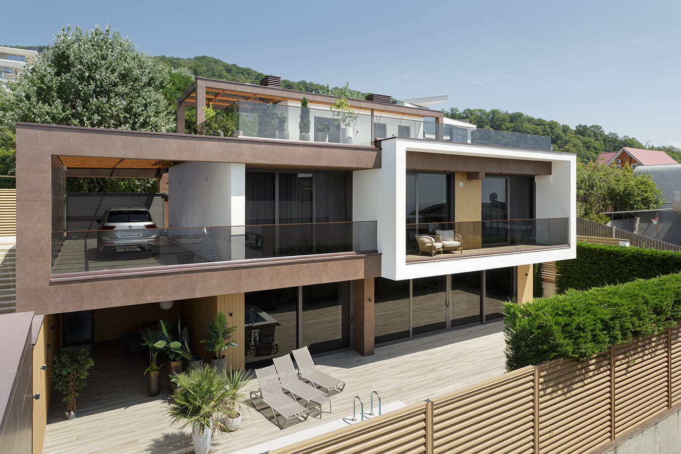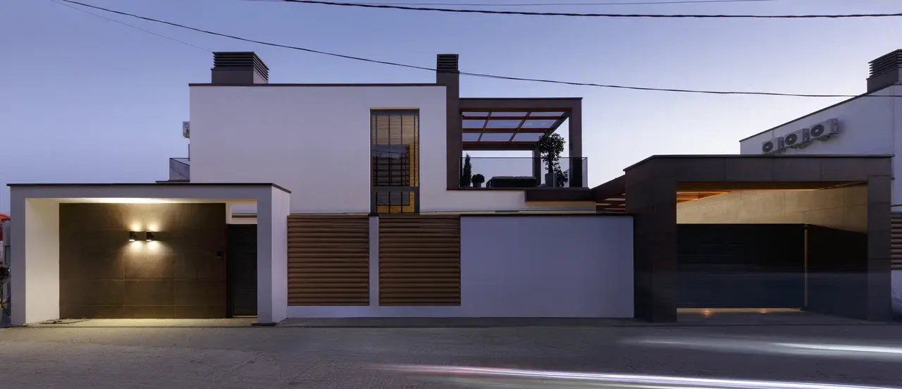 Starting with two ingeniously combined plots totalling 9 acres, Arch Nova masterfully crafted a villa comprising two distinct houses, each a perfect haven for a family of five. Despite the seemingly limited space, the studio’s design prowess shines through, transforming the footprint into a haven offering all the necessary functional areas for a comfortable suburban life.