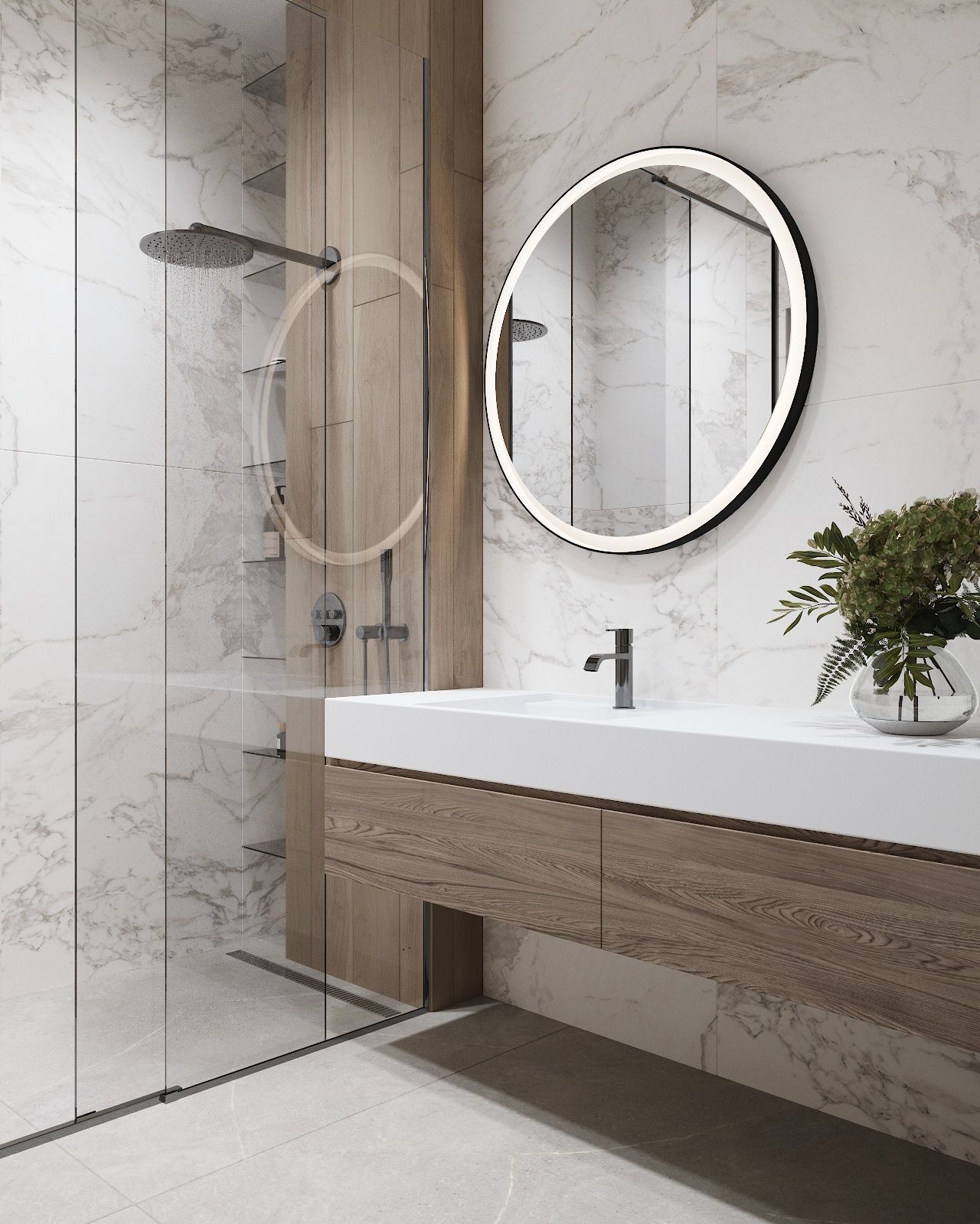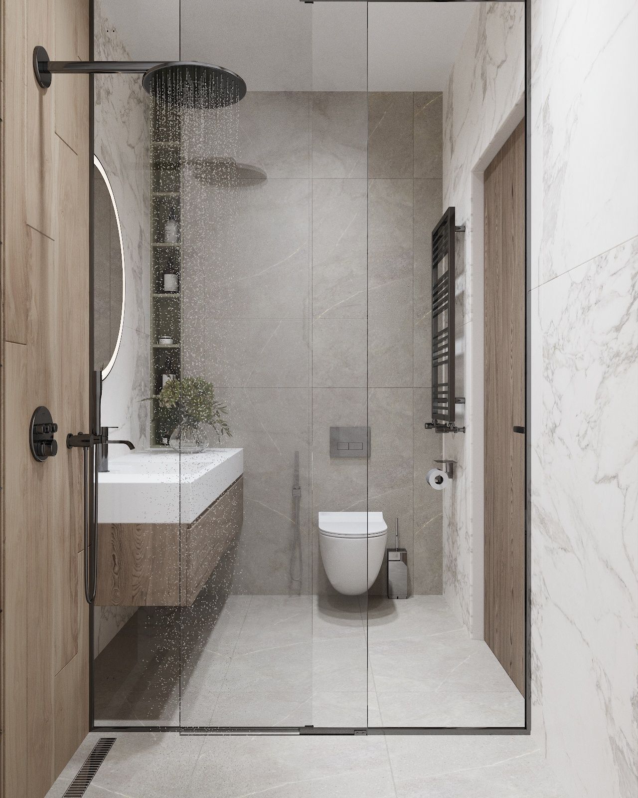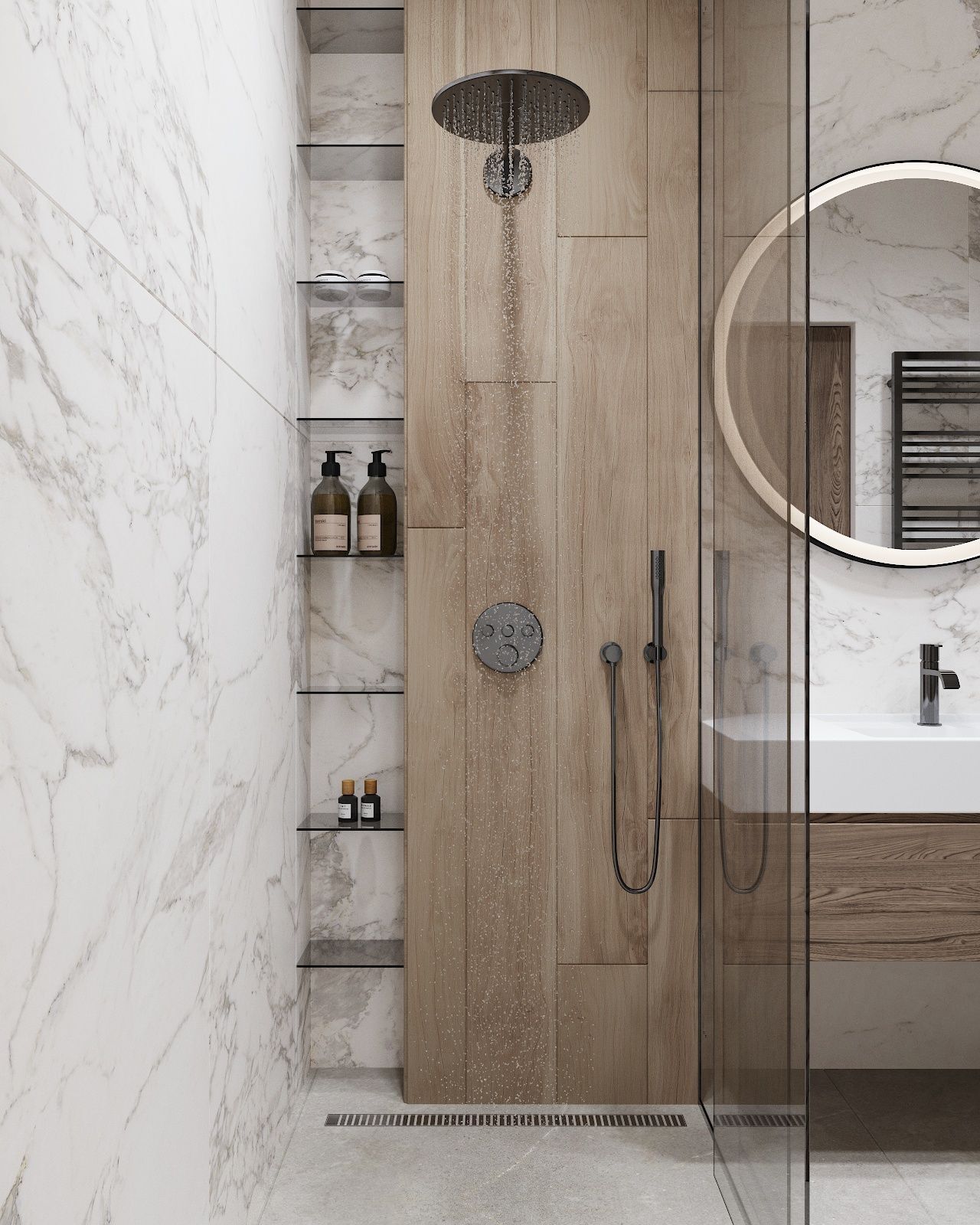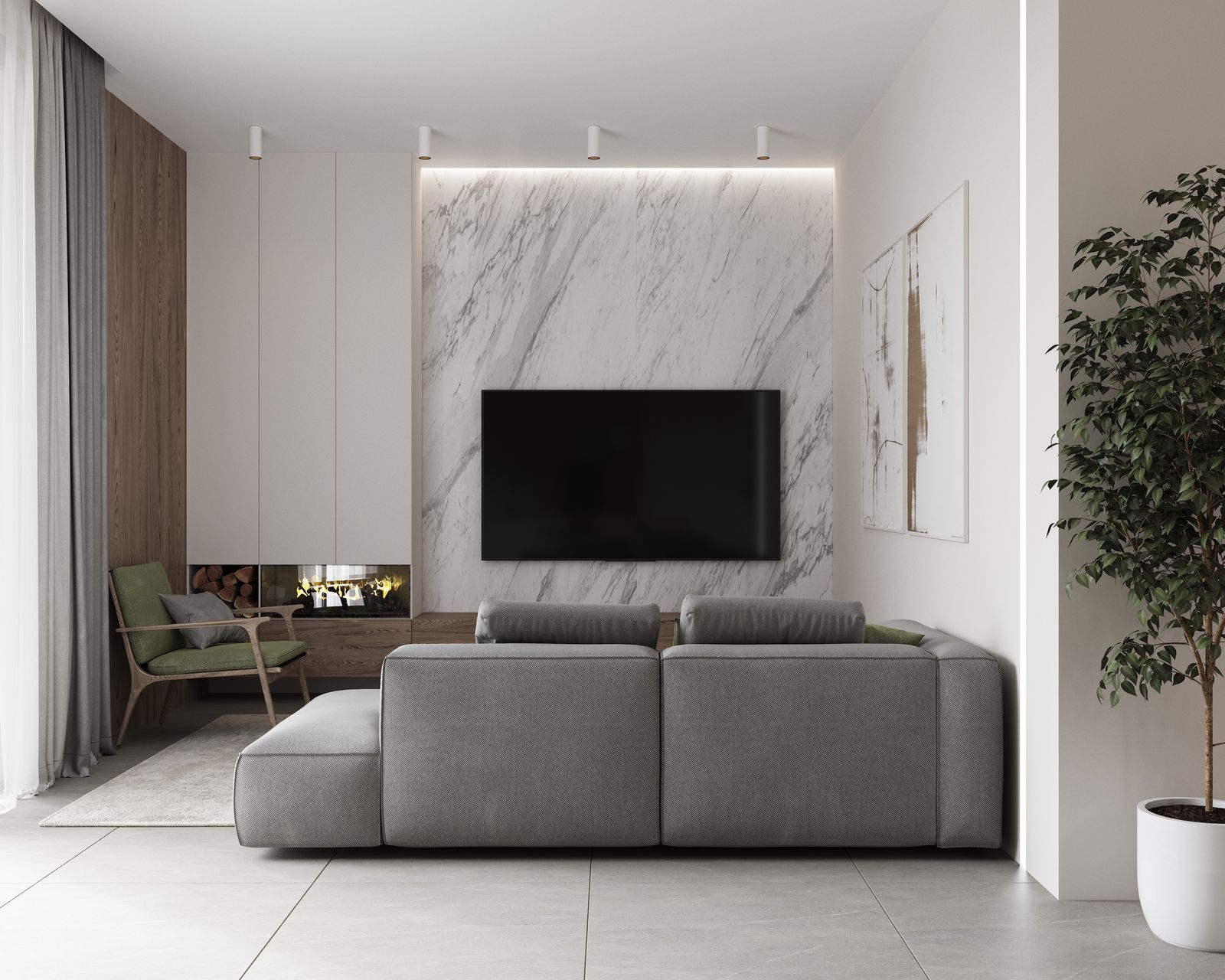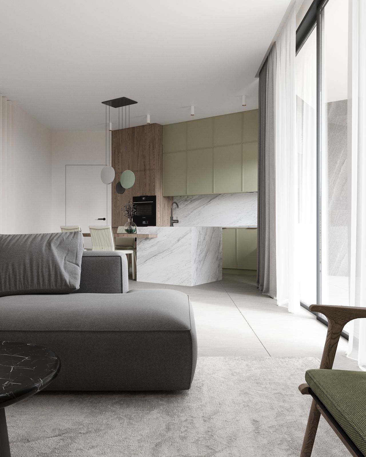 Дом построен на участке площадью в 3 сотки, с перепадом высот и треугольной формы. Нам удалось сделать достаточно большую зону для отдыха и 2 машиноместа.