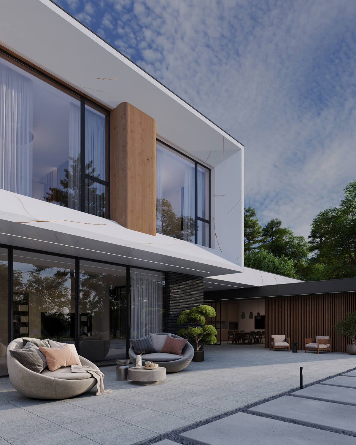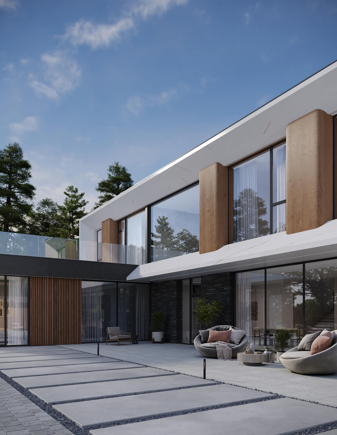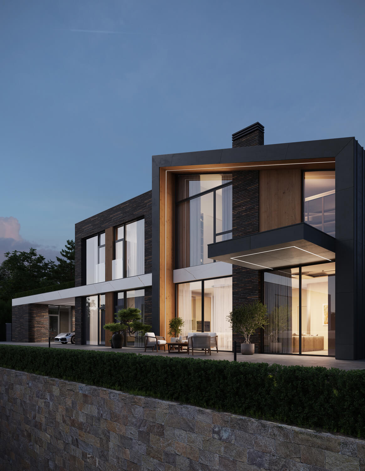Этот проект — история двух родных людей, брата и сестры, которые решили построить рядом дома для своих семей. Наша задача заключалась в том, чтобы создать гармоничный архитектурный ансамбль из двух вилл, сохранив при этом приватность и индивидуальность каждого дома.