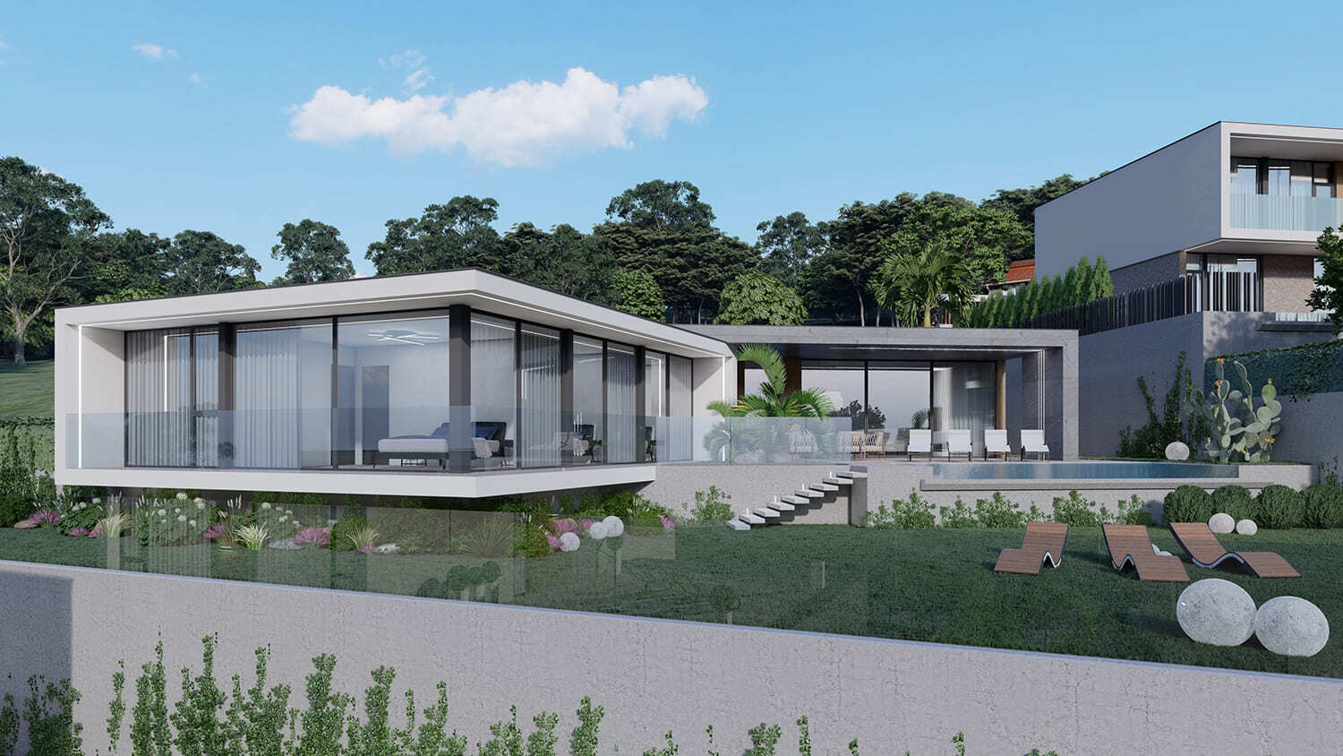 В то же время грамотное террасирование участков создало приватность, комфорт и прекрасные панорамные виды для всех будущих жителей.