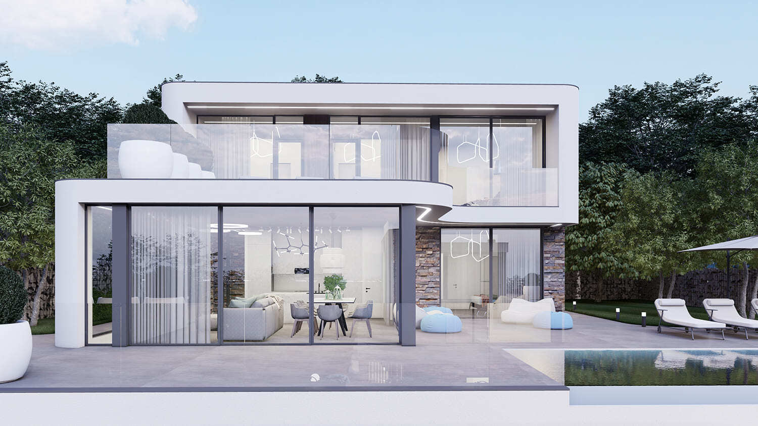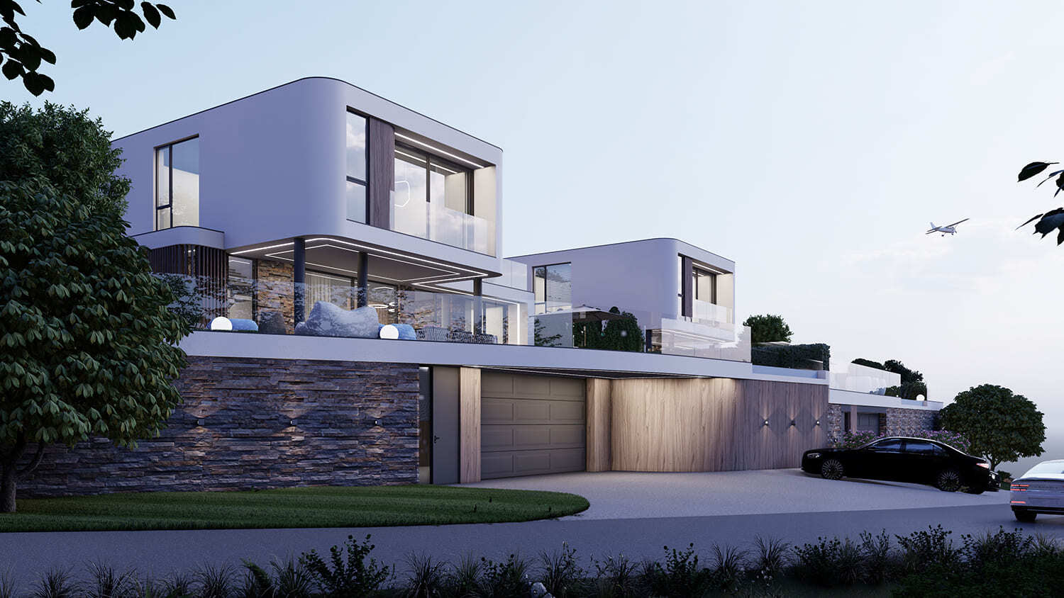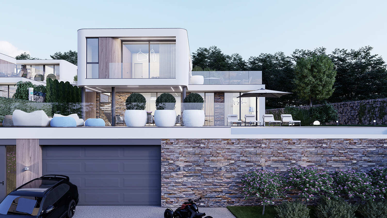 Все дома расположены на участке 6 соток, что позволяет собственникам наслаждаться простором и тишиной. Мы использовали террасирование участков, и эксплуатируемая кровля гаража позволила нам создать прекрасную территорию с зоной патио и бассейна. Это позволит нашим жильцам наслаждаться красотой окружающей природы и комфортом пребывания на своих участках в любую погоду.
