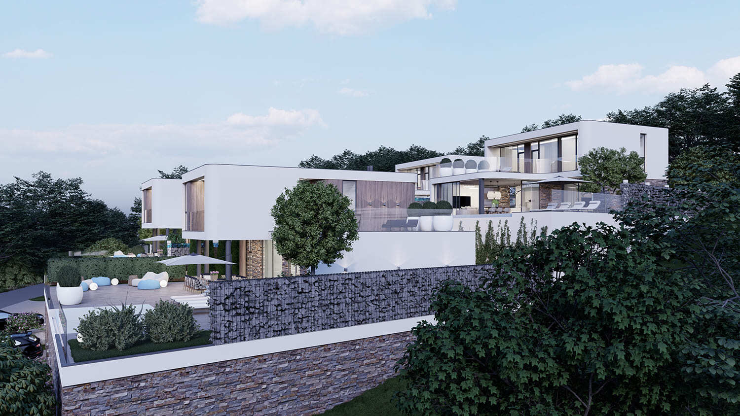 Расположен в окружении лесного массива города Сочи. Мы постарались спроектировать дома таким образом, чтобы каждый собственник имел свой личный вид на лесной массив данного региона, а все дома выполнены в едином стиле, что создает гармоничный архитектурный ансамбль в этом квартале.