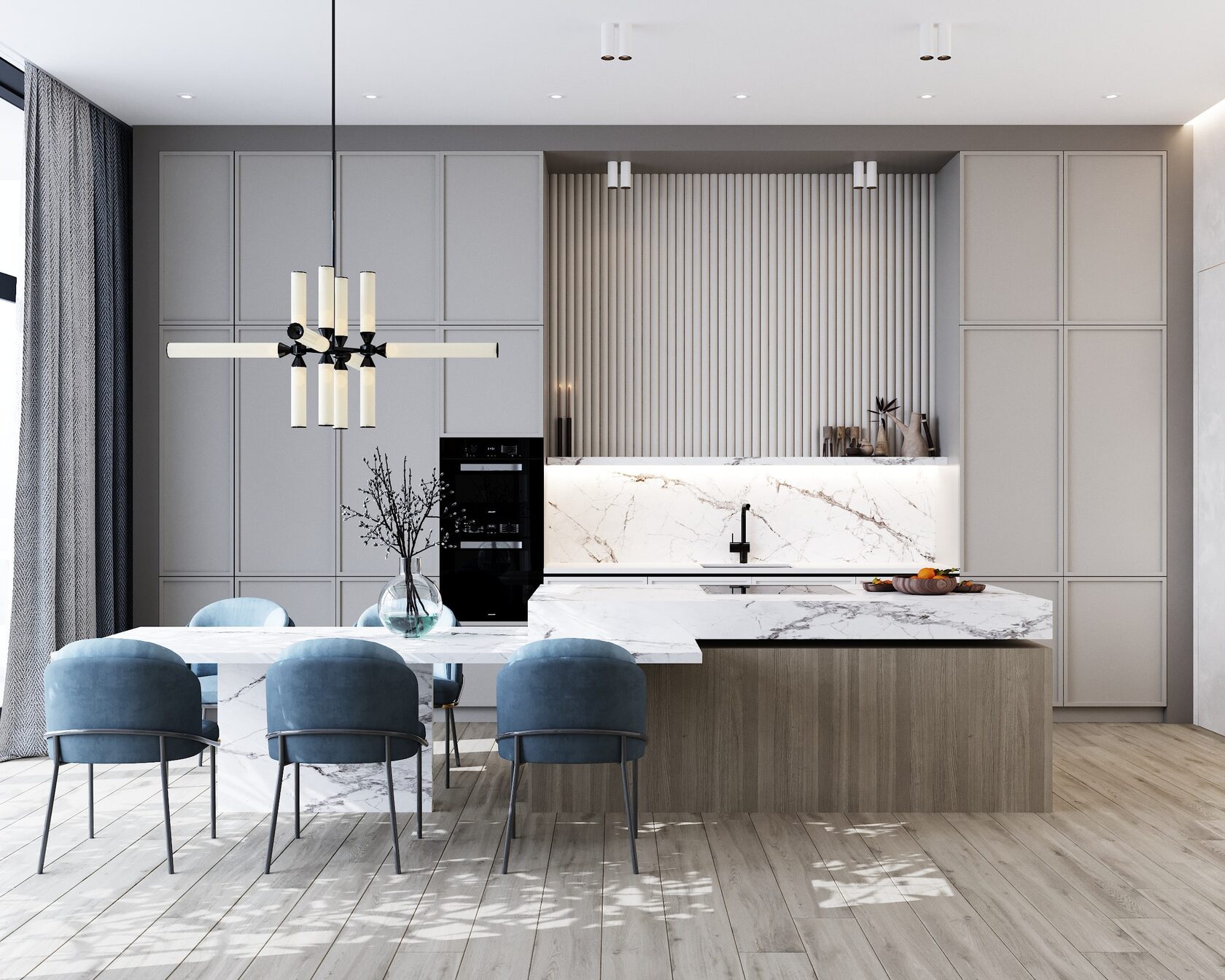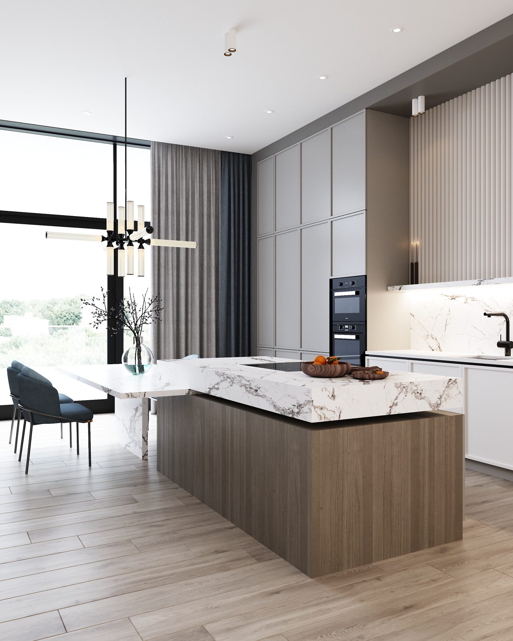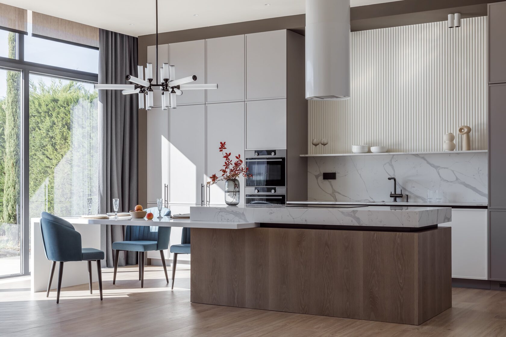 - Минималистичный дизайн фасадов и функциональное пространство;