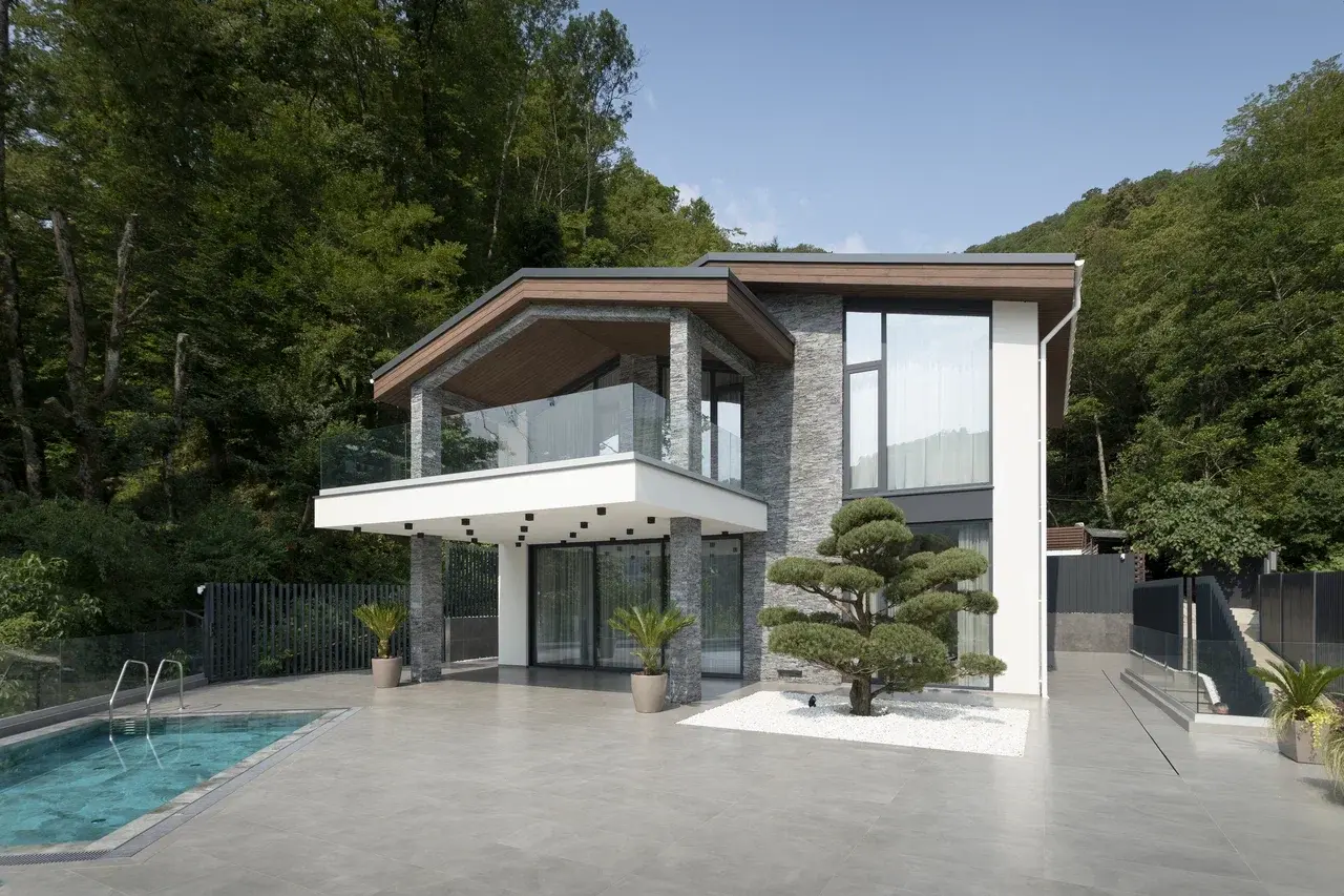 Дом расположен на живописных склонах Мацесты, где природный рельеф стал частью архитектурной композиции.