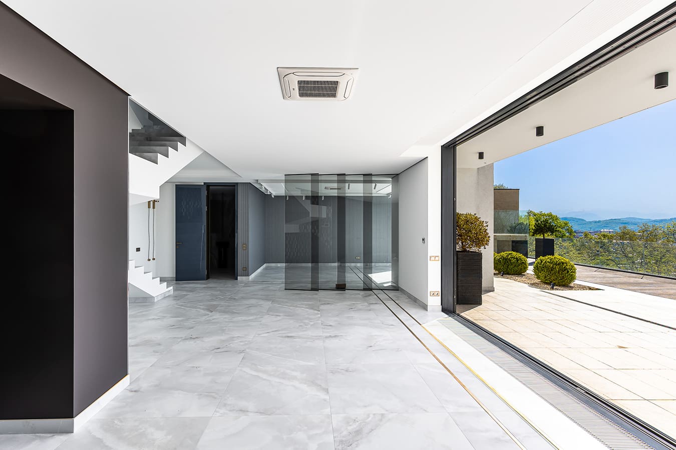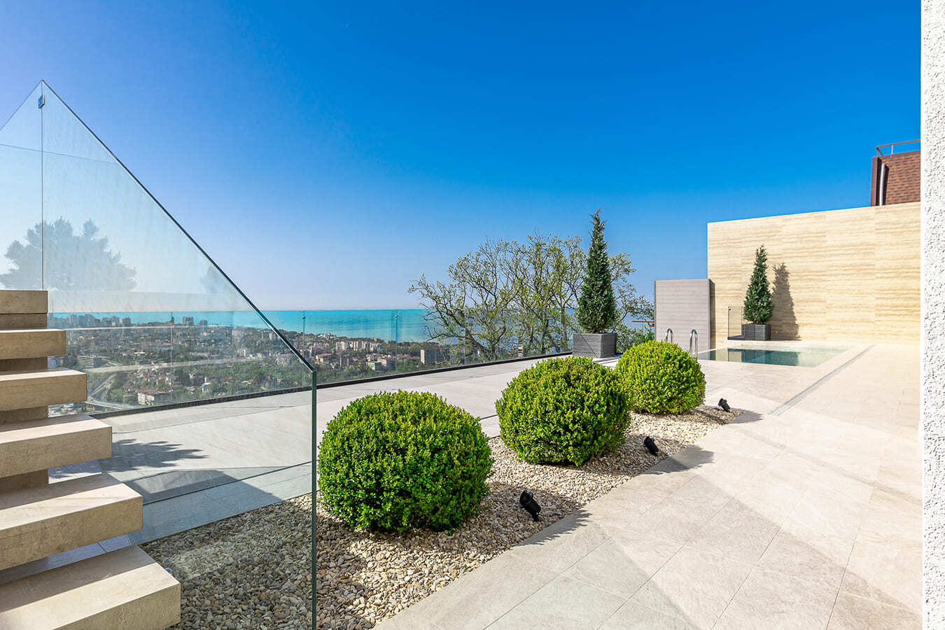 В результате удачной планировки нам удалось сделать во всех жилых помещениях приватный панорамный вид на весь город, море и горы.