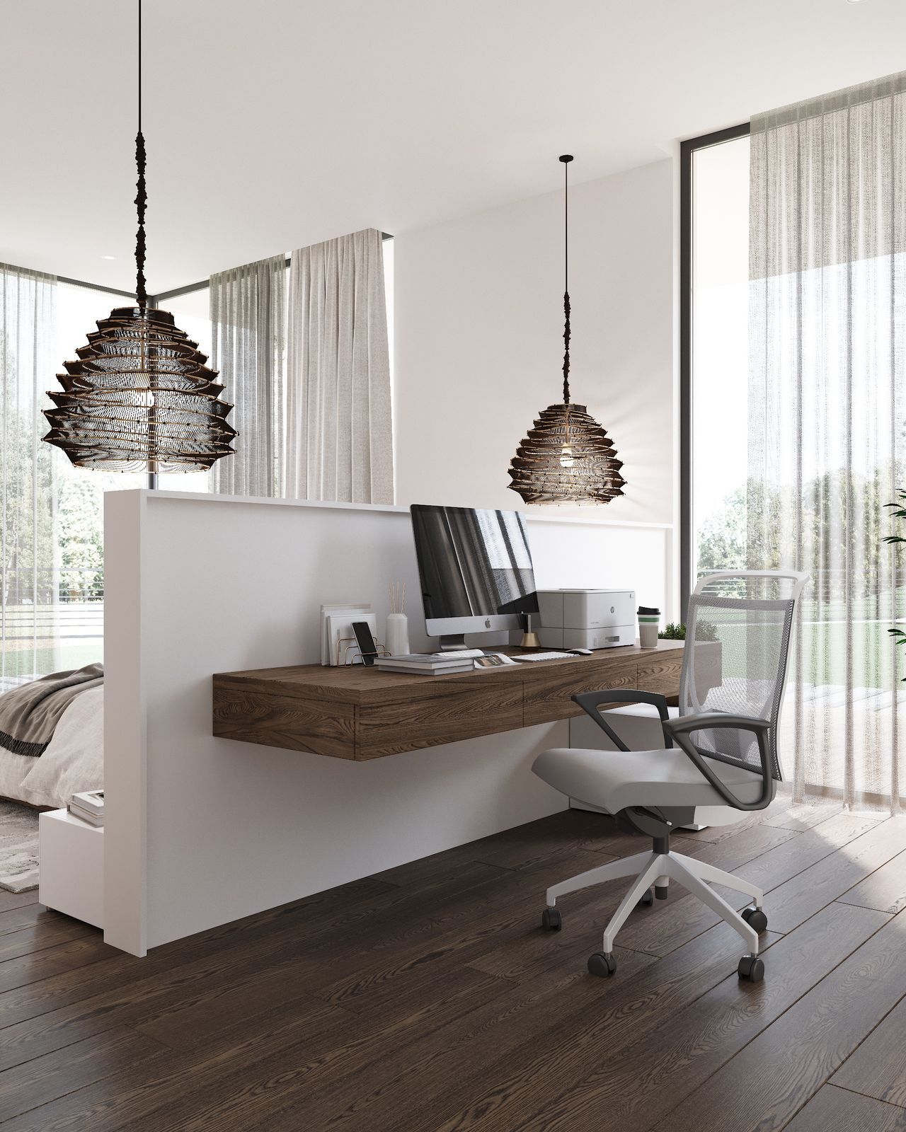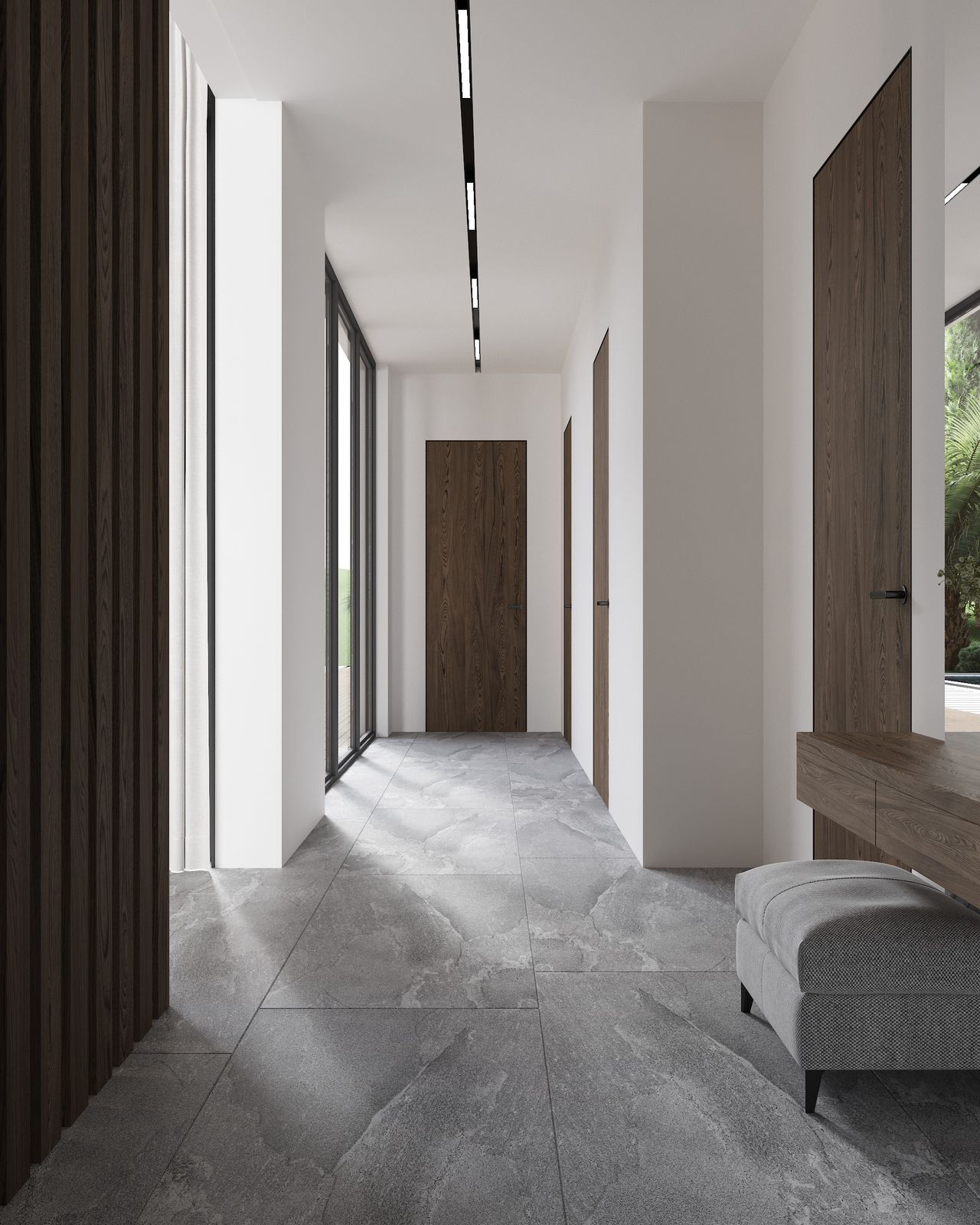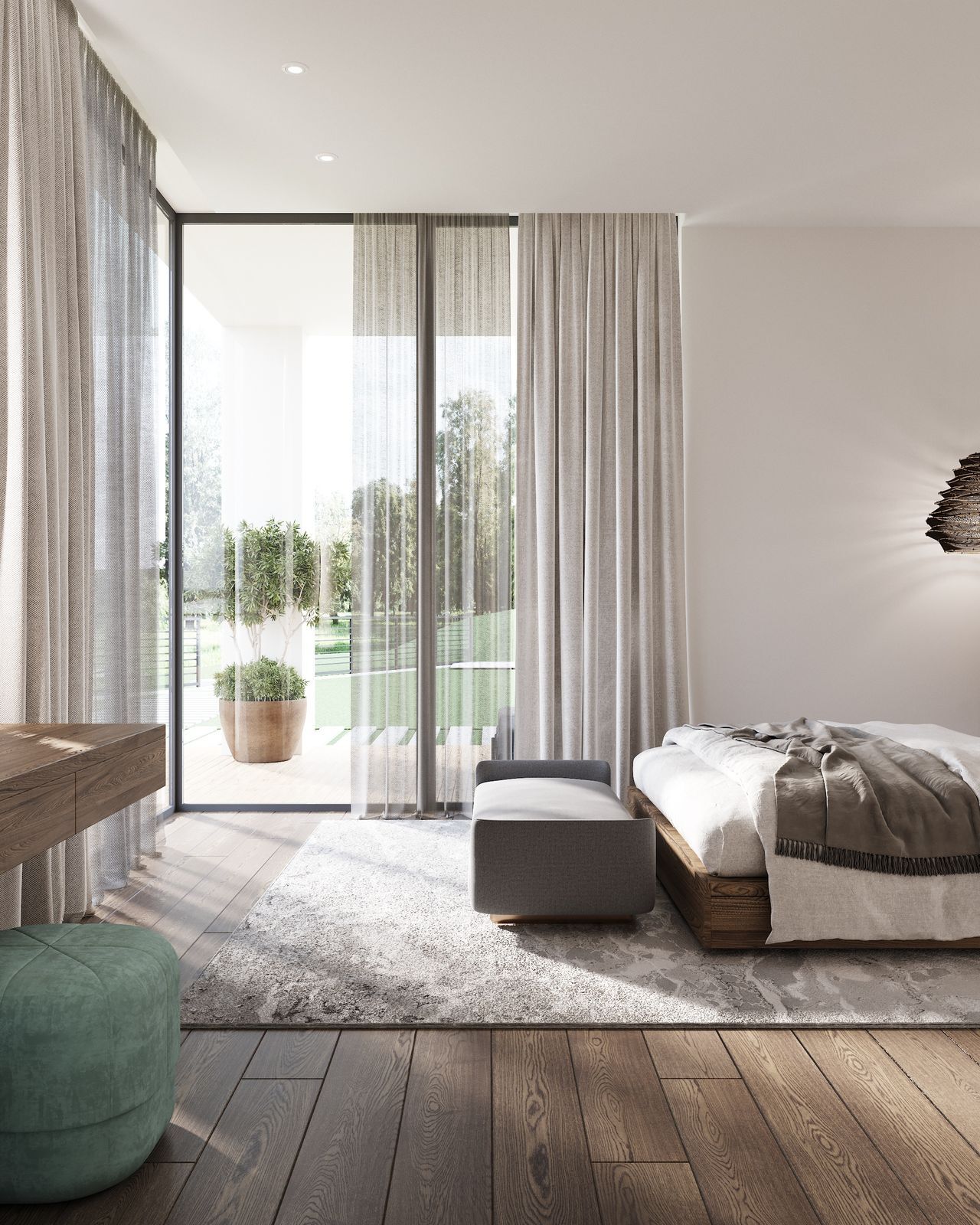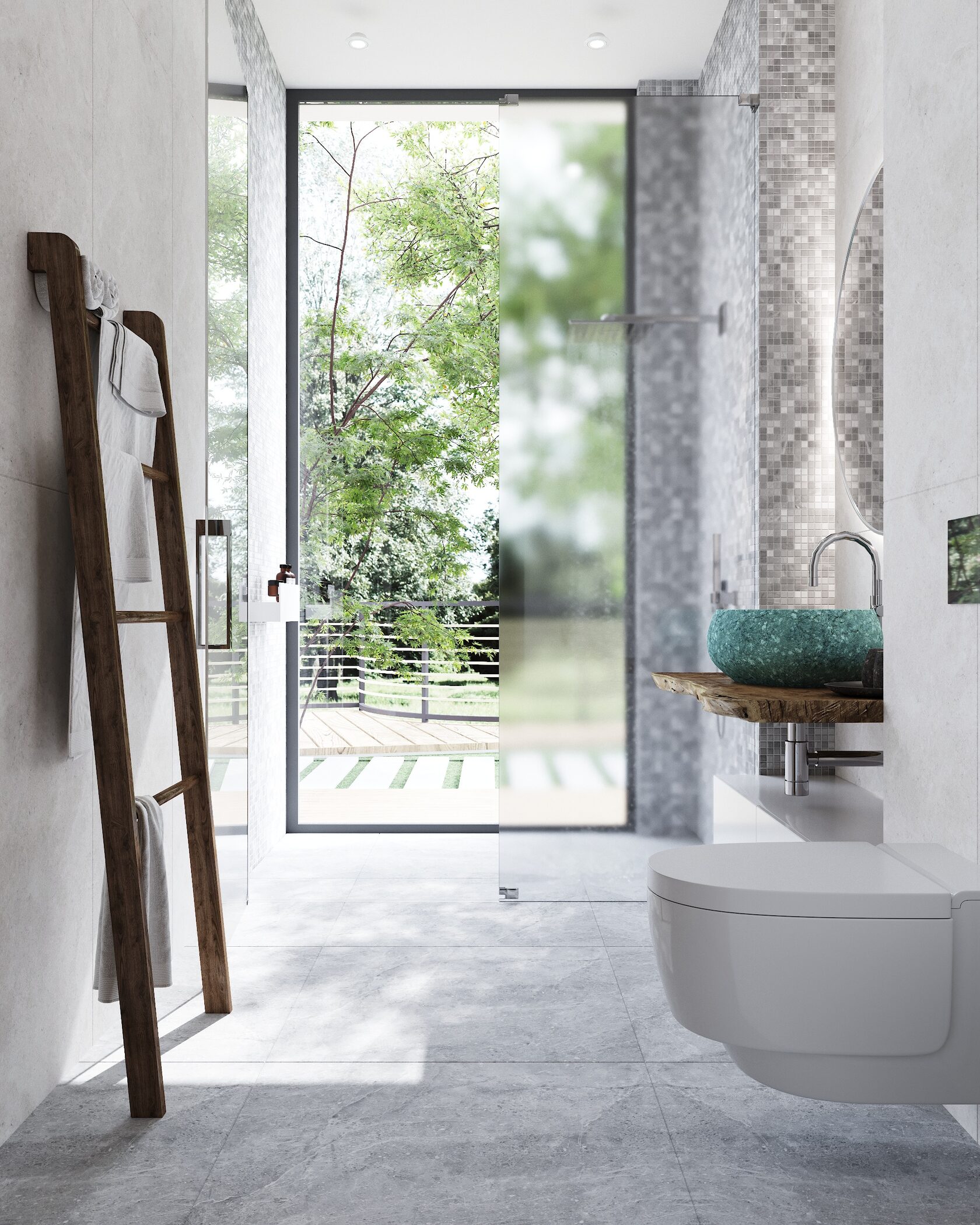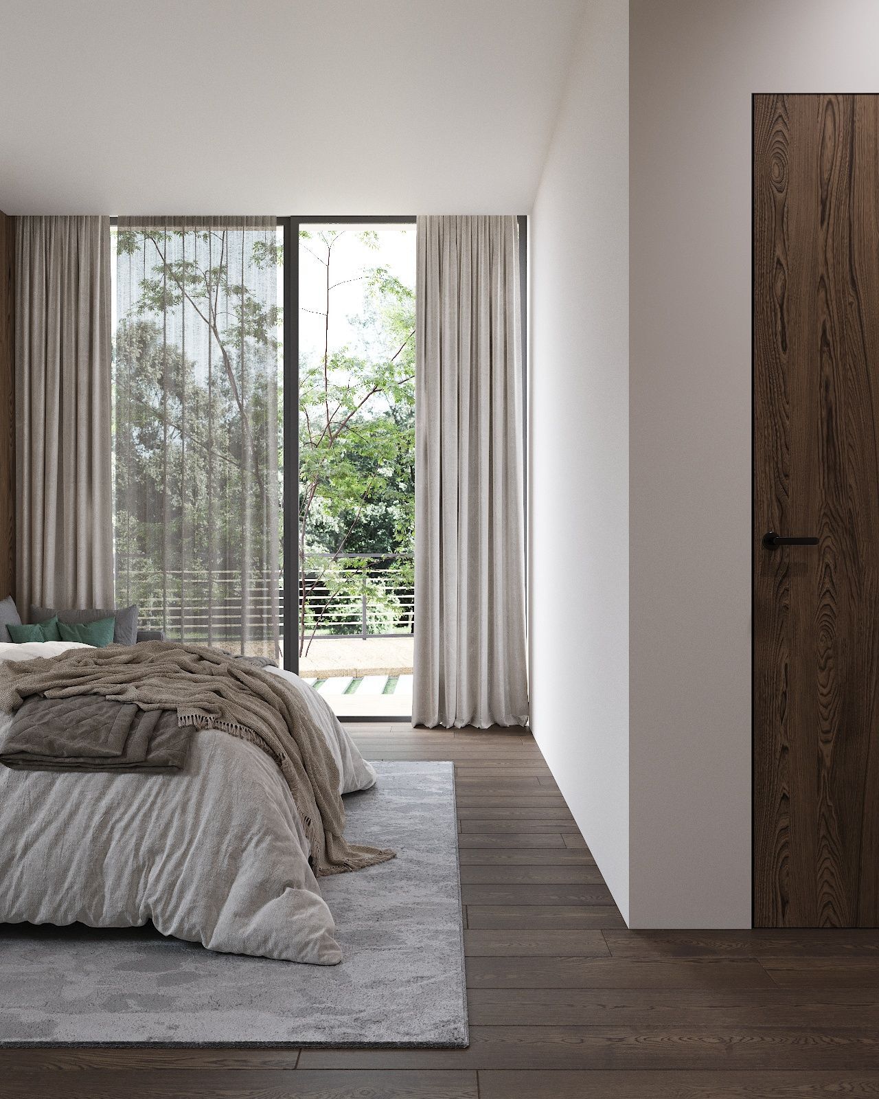 Панорамные окна охватывают все жилые спальни и ряд санузлов, вид открывается на зеленый лесной массив национального парка.