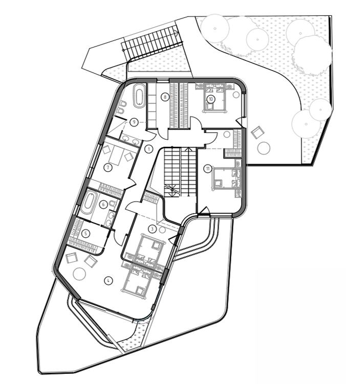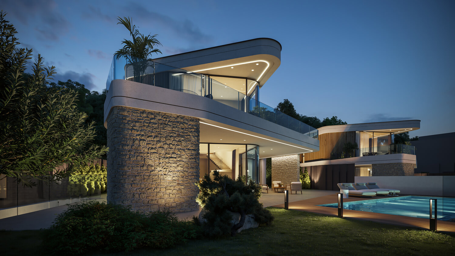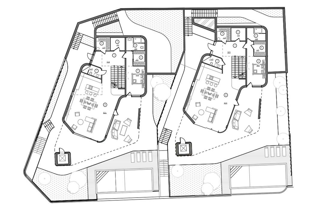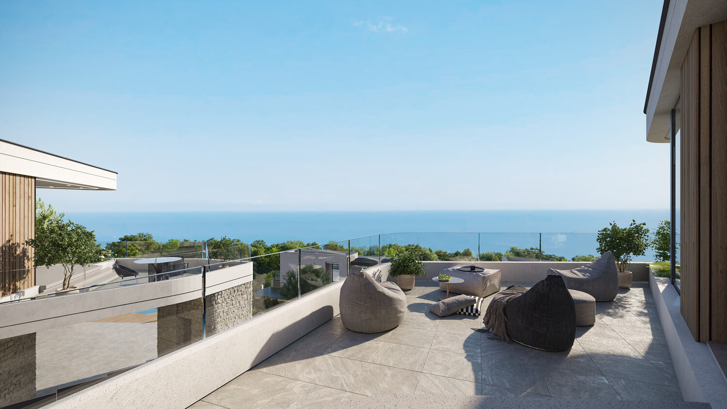 - Архитектура проекта спроектирована так, чтобы будущие жители могли чувствовать себя защищённо от соседских взглядов и одновременно открыто — к природе, к панорамам, к морю.