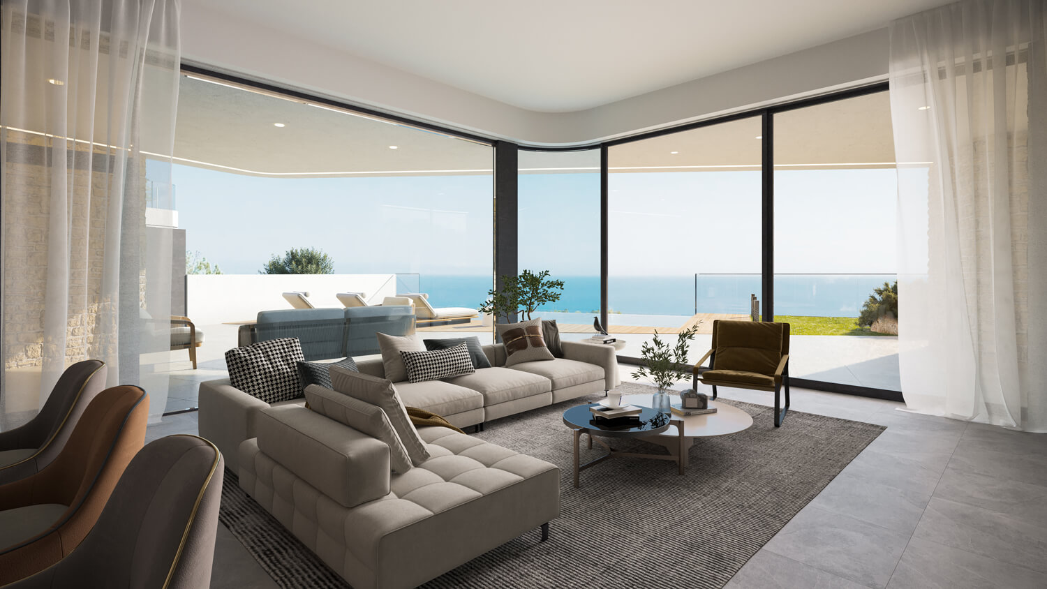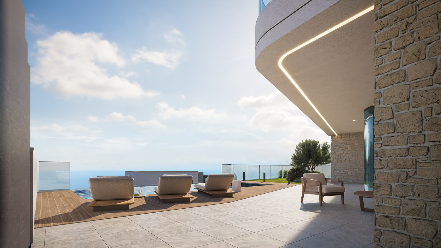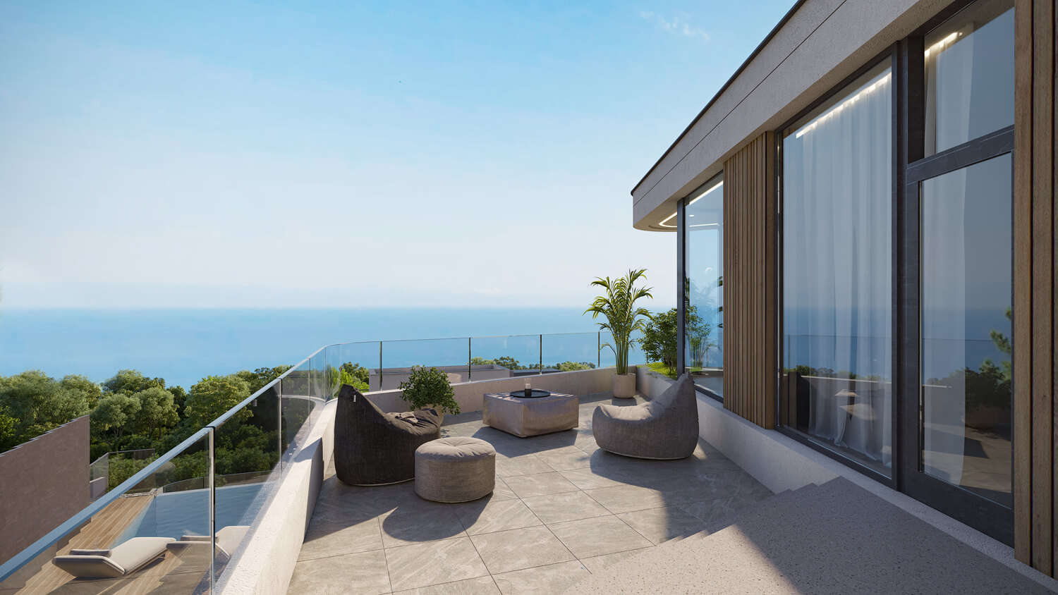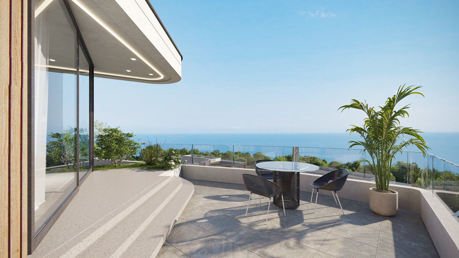 Так родился гармоничный ансамбль пространств с приватной видовой террасой-патио — местом абсолютного уединения с морем.