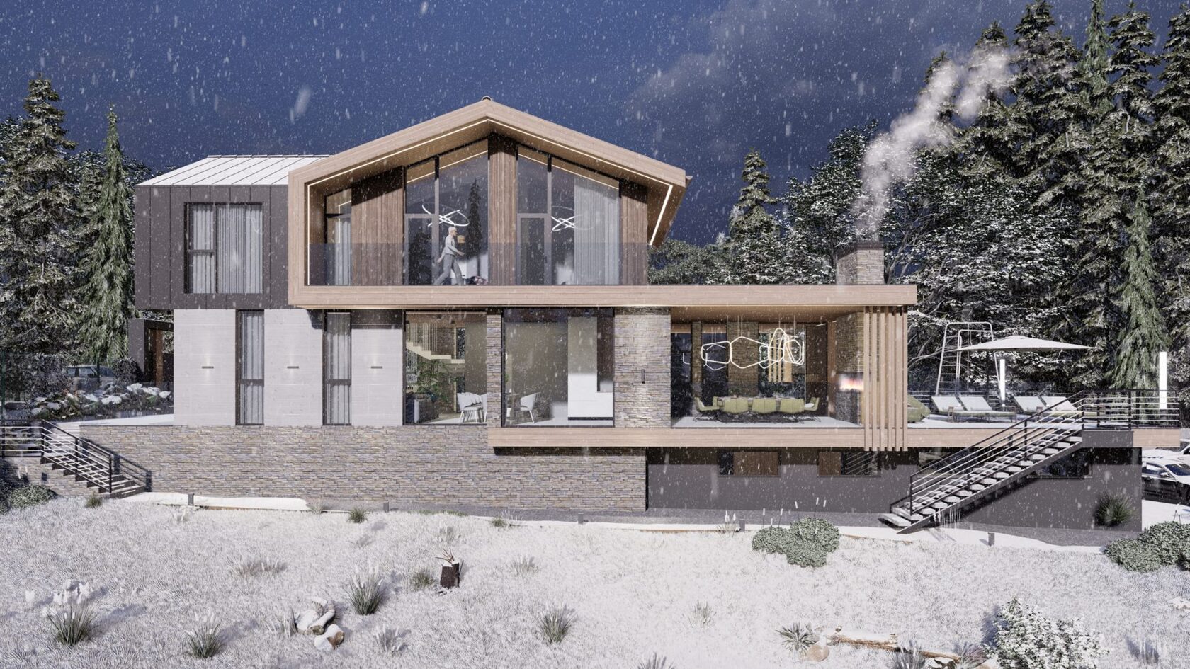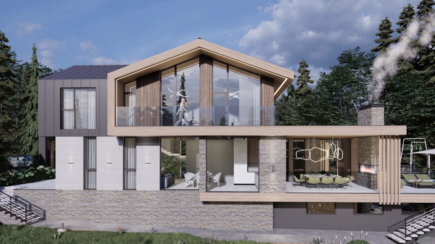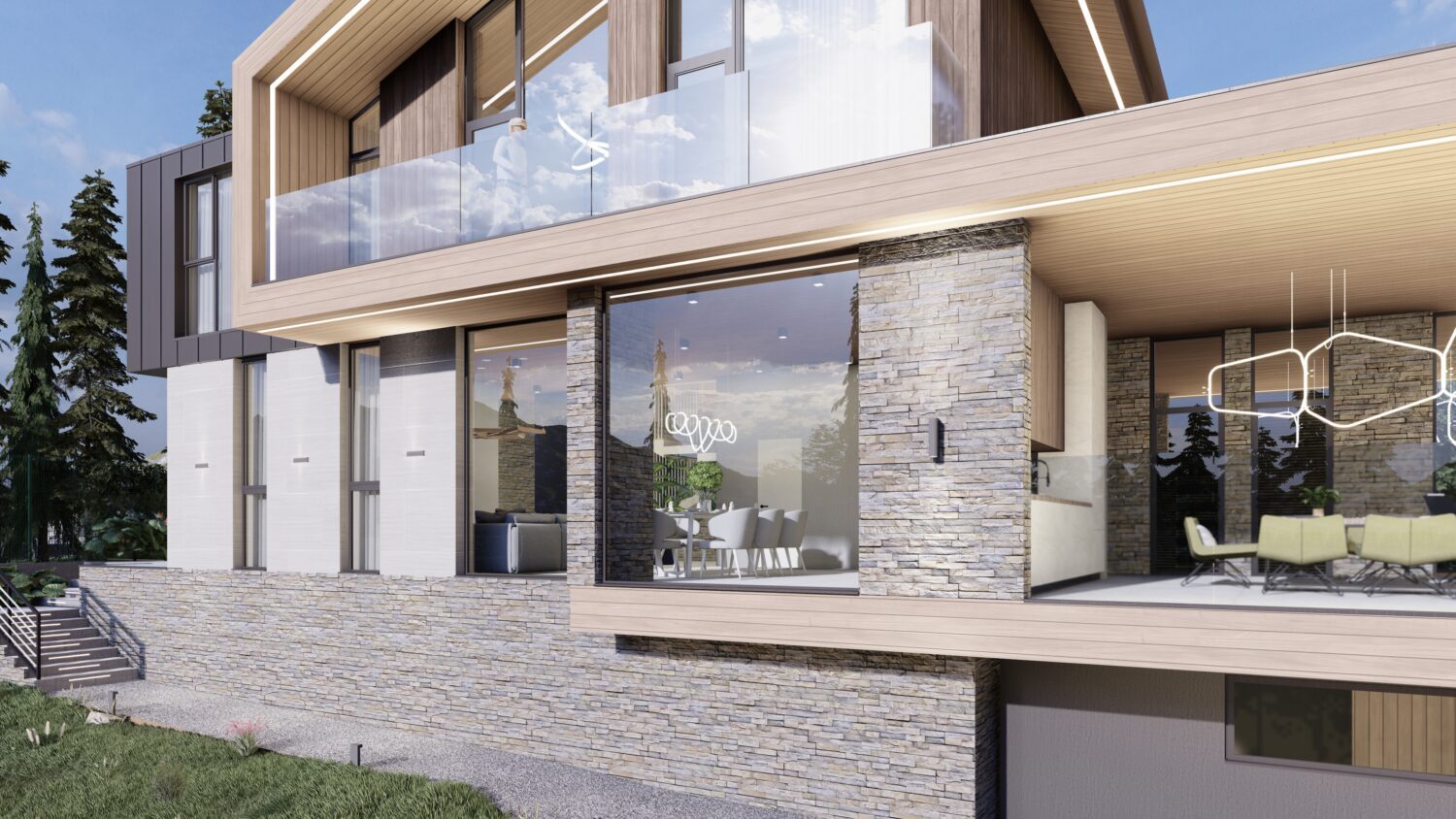 Мы организовали пространство таким образом, чтобы во всех помещениях было ощущение максимального единения с природой с южной ориентацией панорамных витражей.